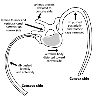 spine in scoliosis and how the spine twists the ribs around.