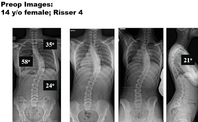 The case example is a 14 year old young lady with a 58 degree right thoracic idiopathic curve, and 35 degree proximal thoracic and 24 degree lumbar curves.